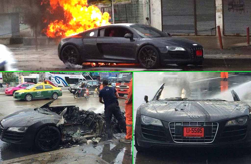 Beberapa hari lalu, sebuah supercar di Bangkok, Thailand kembali terbakar pada Kamis (21/8). Meski saat itu hujan mengguyur, namun api yang keluar dari dapur pacu mobil super dari Audi itu tidak kunjung surut. Bahkan api melalap bagian kabin hingga belakang mobil dan hanya menyisakan bagian depan mobil.