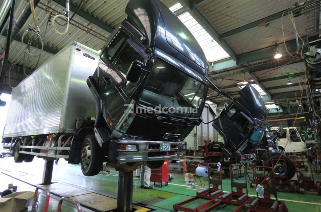 Selain menjelaskan cara kerja sistem tersebut, bengkel brand truk asal Jepang itu juga mengajak kami melihat dari dekat proses pelayanan yang mereka lakukan. Termasuk kondisi bengkel hingga gudang tempat menyimpan stok komponen yang mereka butuhkan.