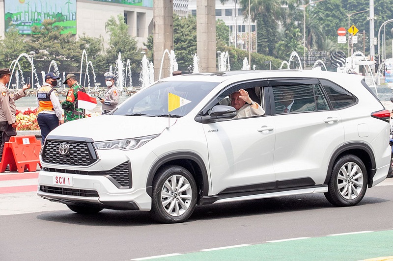 Selain tergolong sederhana, Innova Zenix yang ditumpangi Paus juga tidak antipeluru seperti layaknya standar kendaraan untuk tokoh-tokoh penting dunia yang berkunjung.