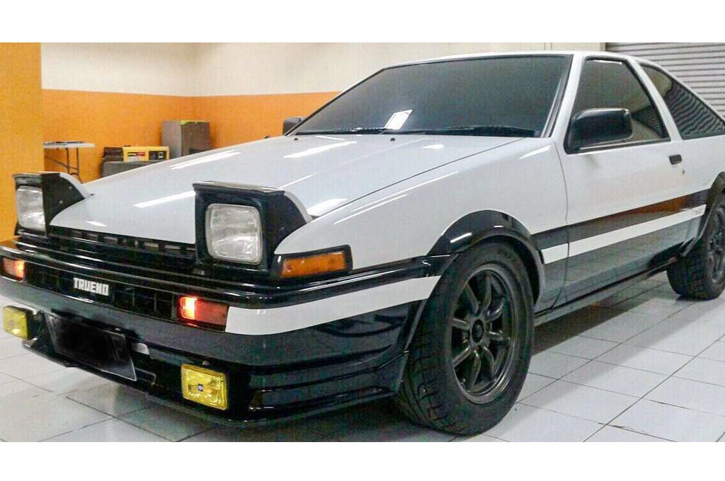 Bahkan uniknya, mobil ini sudah didandani dengan gaya yang sama dengan mobil di film Initial D. Lengkap dengan striping di bagian samping, hingga tulisan dengan huruf kanji di pintu.