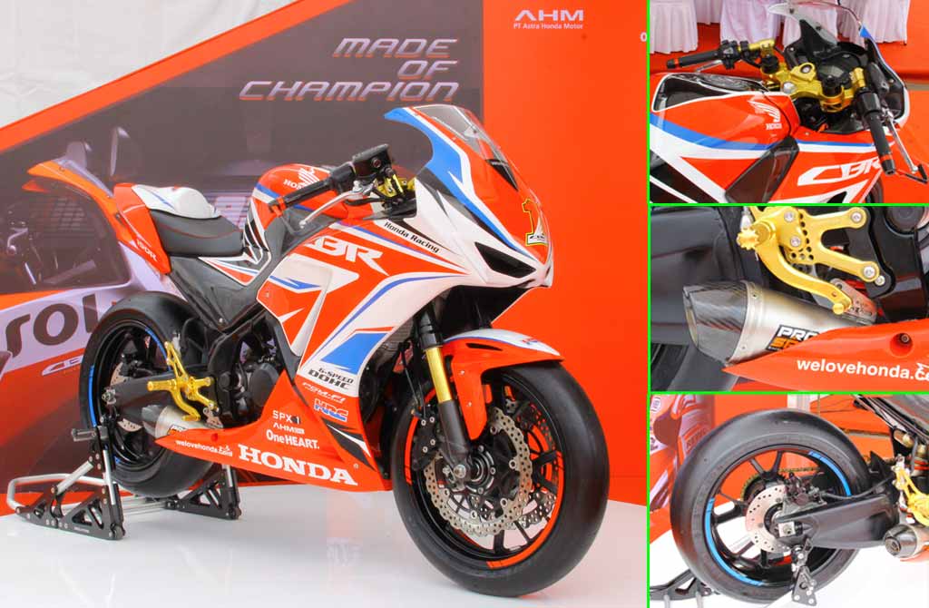 medcom.id, Jakarta: Ada hal menarik ketika peluncuran All New Honda CBR150R di area Parkir Barat, Jakarta International Expo-Kemayoran, Jakarta (7/9) lalu. Yaitu motor modifikasi All New CBR150R versi balap. Modifikasi ini bahkan dirancang sendiri oleh PT. Astra Honda Motor (AHM) melalui tangan dingin Djalu dan Hapsoro.