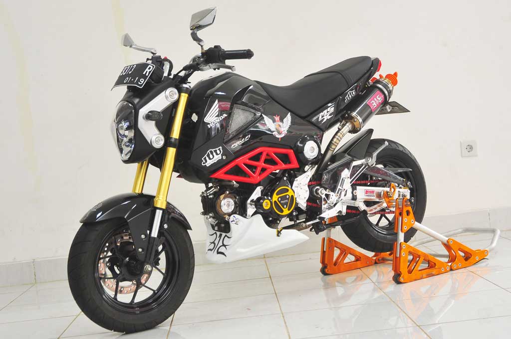 Selain wujud standar, di Thailand juga banyak MSX yang telah dimodifikasi. “Makanya sebelum pulang sekalian beli barang-barangnya dulu, padahal belum ada motornya,” cerita Iwan, yang dipercaya mengurus Honda MSX Kelir hitam ini.