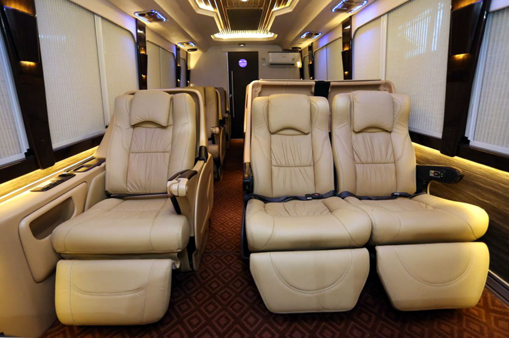 Secara keseluruhan, bus ini di bagi ke dalam ruang ruangan yakni depan dan belakang. Di ruang depan bisa di bilang hanya tersedia untuk sembilan penumpang.