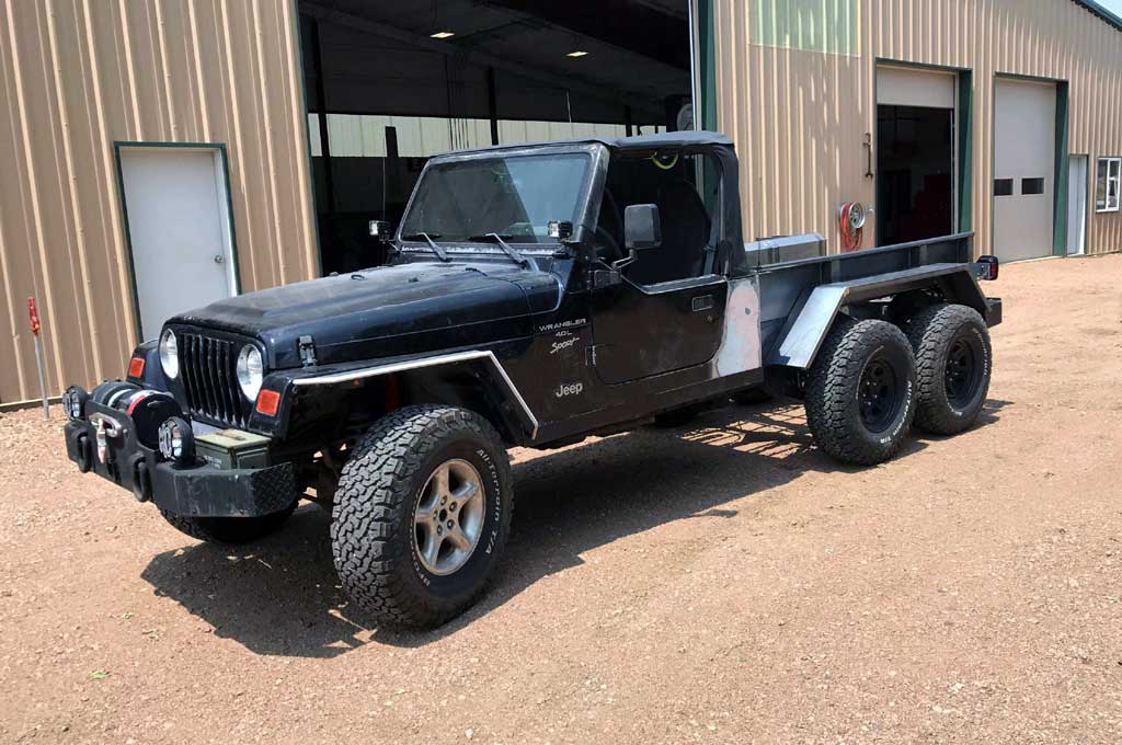 Itu semua dilkukan dengan pemasangan frame Jeep cadangan, poros dan suspensi, yang ditambahkan ke bagian belakang frame saat ini, yang berarti stok suku cadang kit TJ tetap digunakan, bersama dengan bawaan pabrik seperti perangkat keras dan tangki bahan bakar.