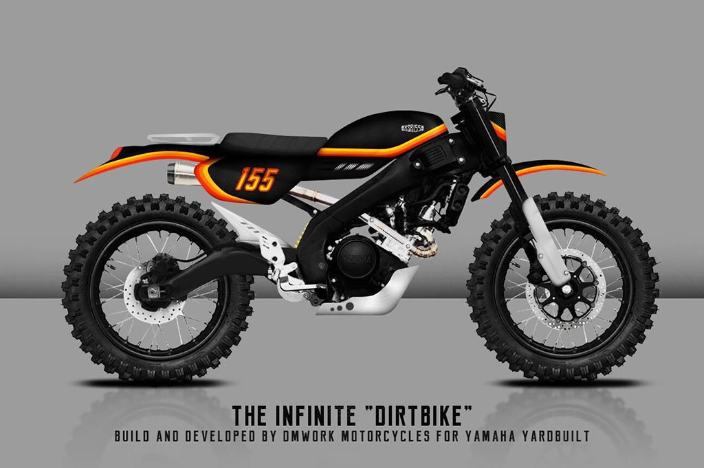 Builder DM Work Motorcycle, Yonatan Ricky, memiliki ide membuat sebuah motor dengan tema Infinite Dirt Bike dengan menggunakan basis XSR 155. Konsep ini hadir dengan mengambil referensi motor cross tahun 80-an, namun akan digabungkan dengan fitur modern yang sudah ada di kuda besi berlogo garpu tala tersebut.