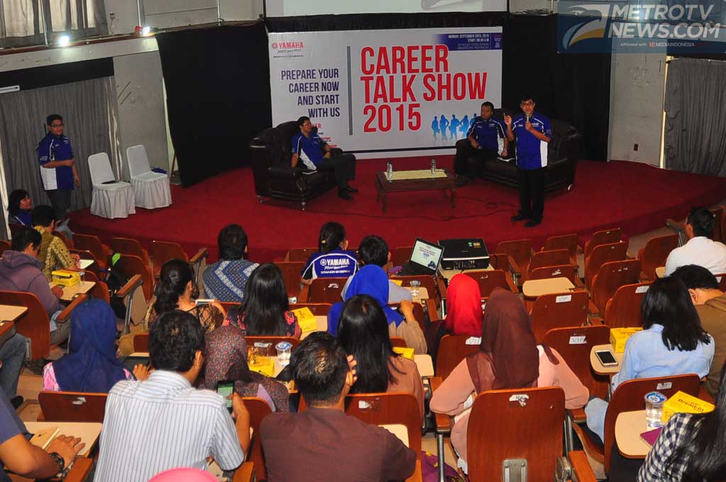 medcom.id, Depok: Bekerjasama dengan Universitas Indonesia (UI), PT Yamaha Indonesia Motor Manufacturing (YIMM) menggelar Career Talk Show, hari ini 28 September, di Ruang Auditorium Gedung Pusat studi Jepang UI, Depok. Jajaran management YIMM menjabarkan mengenai karir bersama Yamaha dihadapan 300 peserta yang hadir.