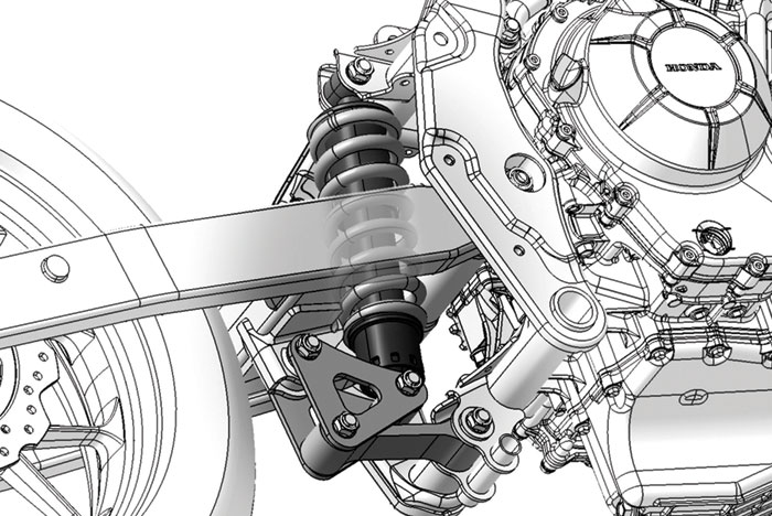 Sistem suspensi ini juga akan mencegah motor mengalami kerusakan akibat gesekan antar body motor, bantalan suspense (rear cushion), serta ABS modulator.