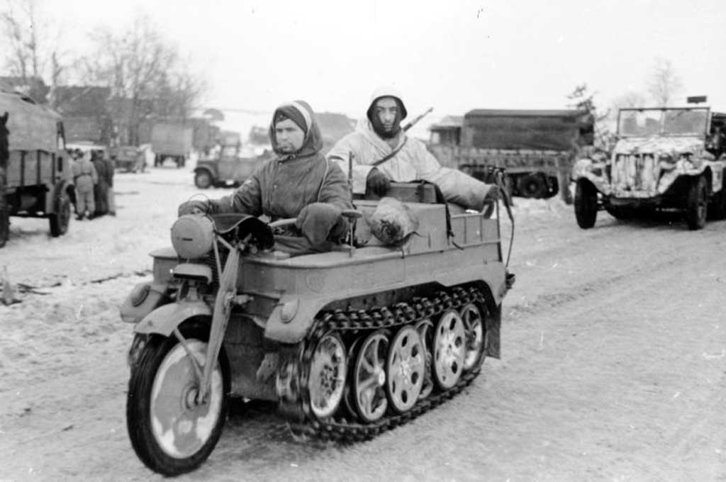Jerman: Perang Dunia II mengingglakan beragam kisah yang menarik, termasuk kehadiran industri otomotif yang pernah ada pada zamannya, seperti sepeda motor unik bernama Kettenkrad.