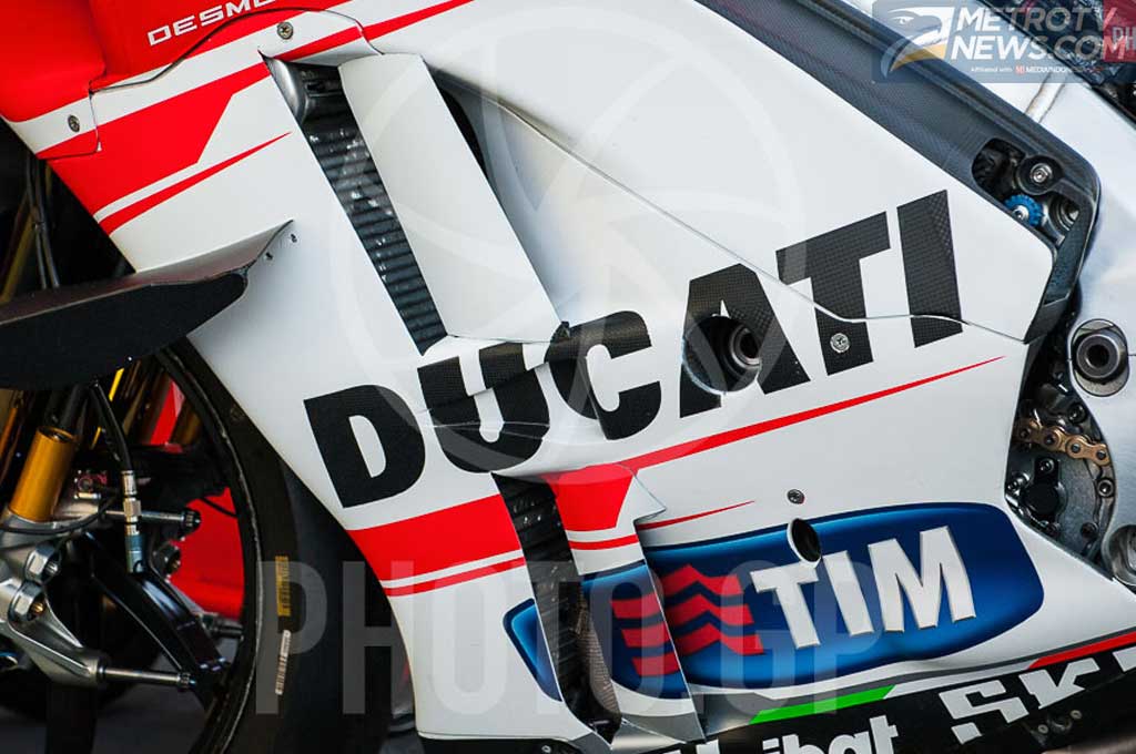 Setelah menggunakan winglet pada fairing kiri dan kanan, kini Ducati mengubah desain lubang udara pada fairing. Perubahan desain lubang udara ini bertujuan untuk proses pendinginan mesin lebih baik. Jika diperhatikan lebih seksama, desain ini sepertinya terinspirasi versi GP11 dan GP12 yang ditunggangi Valentino Rossi saat di Ducati.