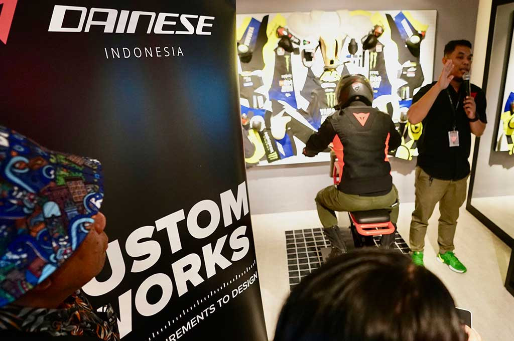 Menurut perwakilan Dainese Indonesia, Arif Widyanto, bahwa Custom Work corner ini memang mereka siapkan untuk melakukan penyesuaian dengan keinginan konsumen. Terutama untuk basis racing suit Misano dan Laguna Seca.