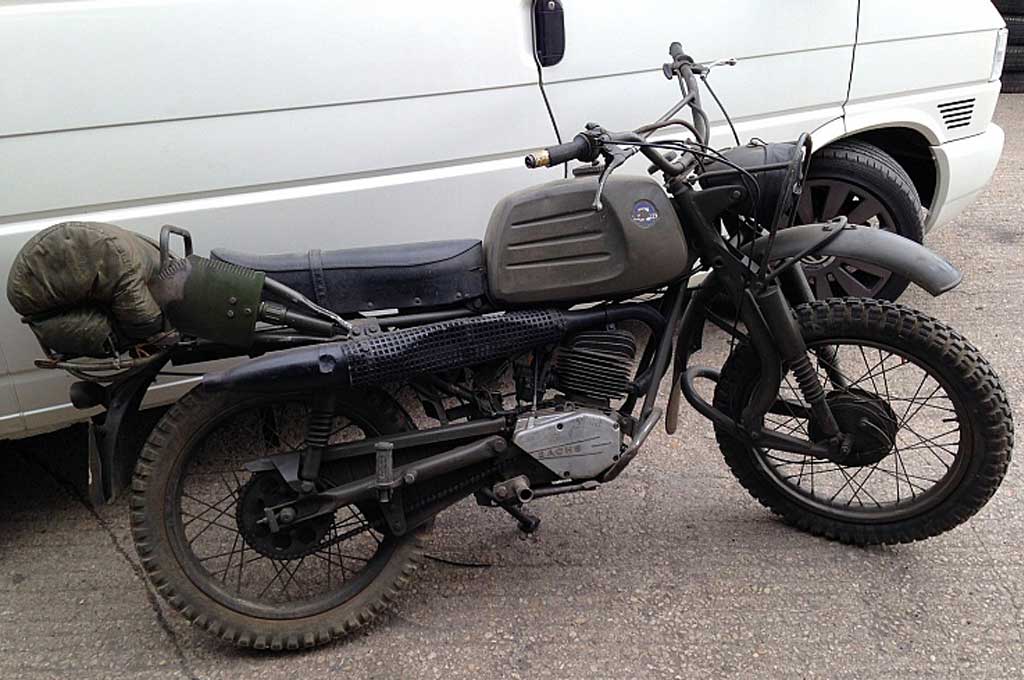 Jika untuk keperluan militer, sudah pasti motor ini harus bisa digunakan di berbagai medan. Terlihat dari desain knalpotnya yang berada di atas mesin dan penggunaan ban kembang tahu dengan ukuran pelek 18 inci. Tangki bensinnya pun terbilang besar karena mencapai 15 liter.