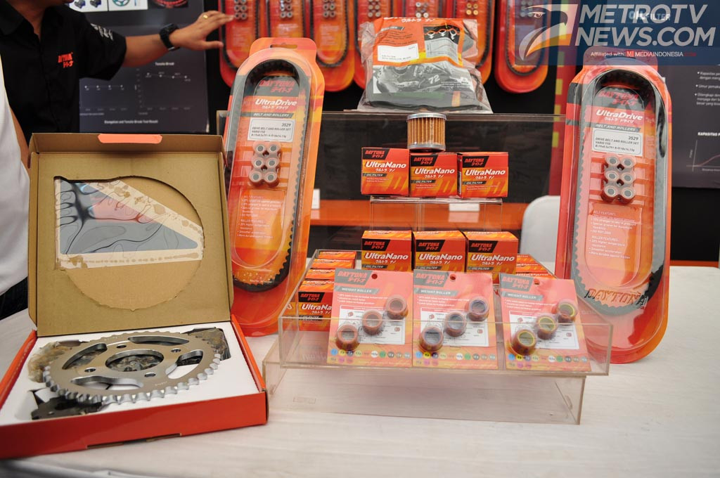Daytona pun mulai membagi fokus mereka pada pasar komponen aftermarket untuk harian. "Sebenarnya sudah sejak tahun lalu sejak mereka mengenalkan kampas rem, aki dan busi, sekarang gear set, belt set, roller, filter udara dan filter oli," lanjut Ricky.