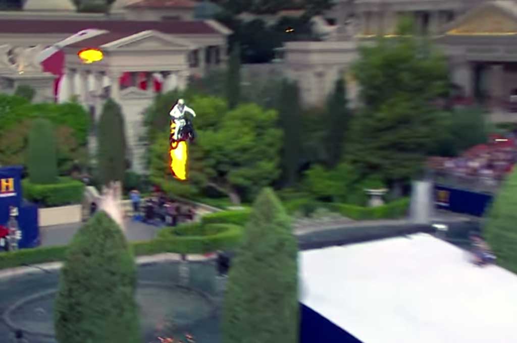 Dikutip dari Carscoops, aksinya ini dilakukan di Caesar's Palace, Las Vegas, Amerika Serikat (AS). Bergabung dalam aksi tersebut ada stunt rider Travis Pastrana dan History Channel.