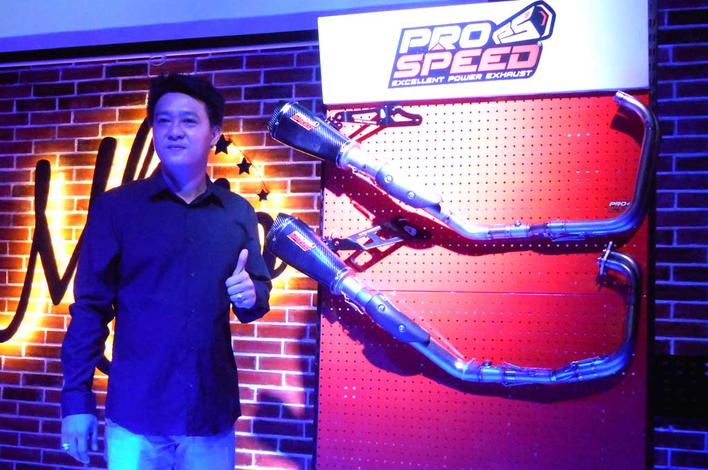 "Jadi kedua komponen ini adalah komponen high performance yang kami luncurkan khusus untuk konsumen pasar otomotif nasional. Untuk sementara kami mendatangkan untuk Kawasaki Ninja 250 FI dan Yamaha YZF-R25. Produk ini spesial karena materialnya. Bagian header menggunakan titanium Jepang, sementara silincernya pakai full compressed carbon," ujar Bie Hau, Product Manager ProSpeed.