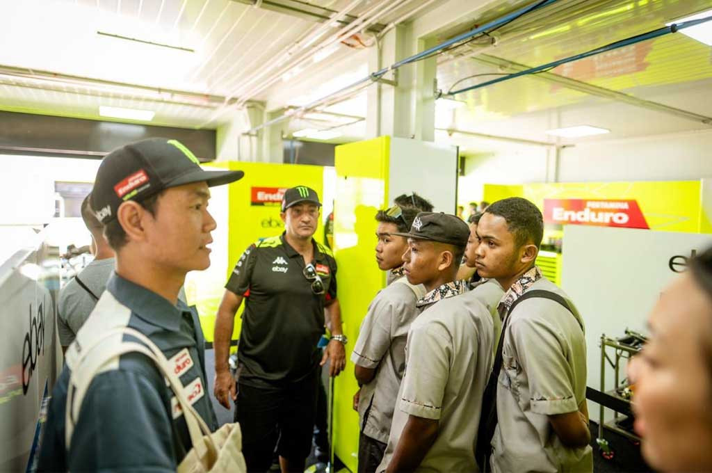 Para pelajar tidak hanya hadir sebagai penonton, tapi juga mendapatkan pengalaman pengalaman eksklusif mengeksplorasi area paddock. Mereka dapat melihat langsung persiapan motor tim mekanik, mempelajari detail teknis, dan berinteraksi dengan rider Pertamina Enduro VR46 Racing Team.