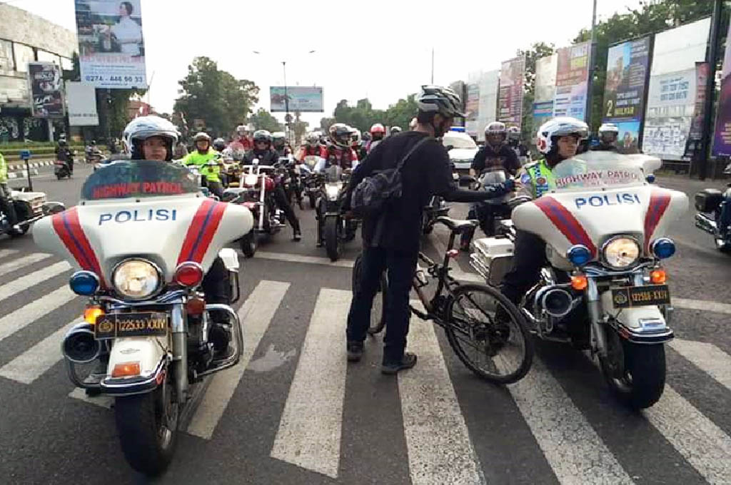 Perjalanan Elanto hari itu dimulai dengan mendatangi pos polisi di Jombor untuk meminta mereka mengatur konvoi, tapi petugas lapangan memintanya ke Dirlantas. Sabtu siang, Elanto ke kantor Dirlantas Polda DIY, menunggu satu jam tapi tak ditemui, hanya bertemu asistennya.