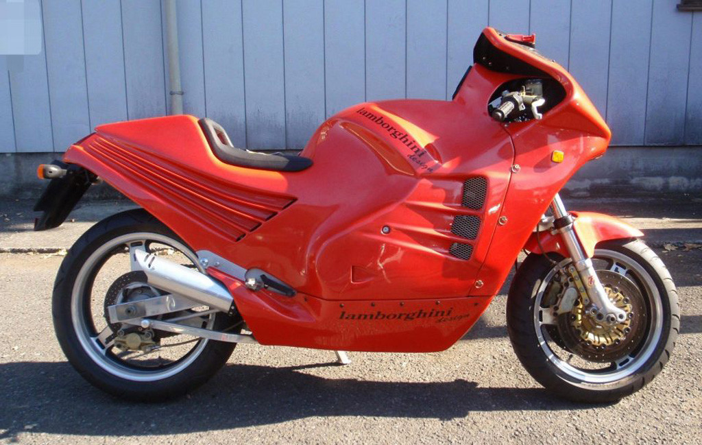 Lamborghini menggandeng ahli sepeda motor asal Prancis untuk membuat enam unit motor prototype. Hasilnya adalah Design 90 ini, dan hanya tersisa satu unit.