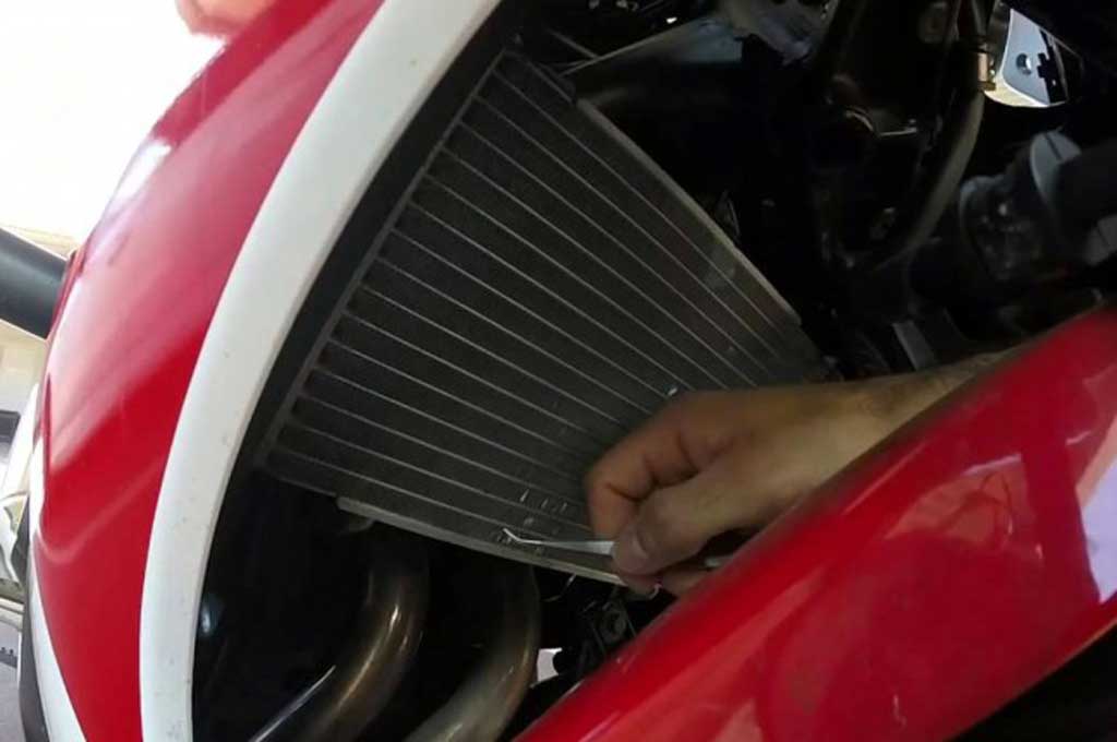 Berikutnya perhatian sirip-sirip penampang radiator. Umumnya terjadi pembengkokan karena terkena kerikil, disemprot air bertekanan, hingga perbuatan iseng orang lain. Jika banyak yang bengkok, maka udara tidak bisa melewati sirip-sirip itu dan pendinginan jadi kurang maksimal.