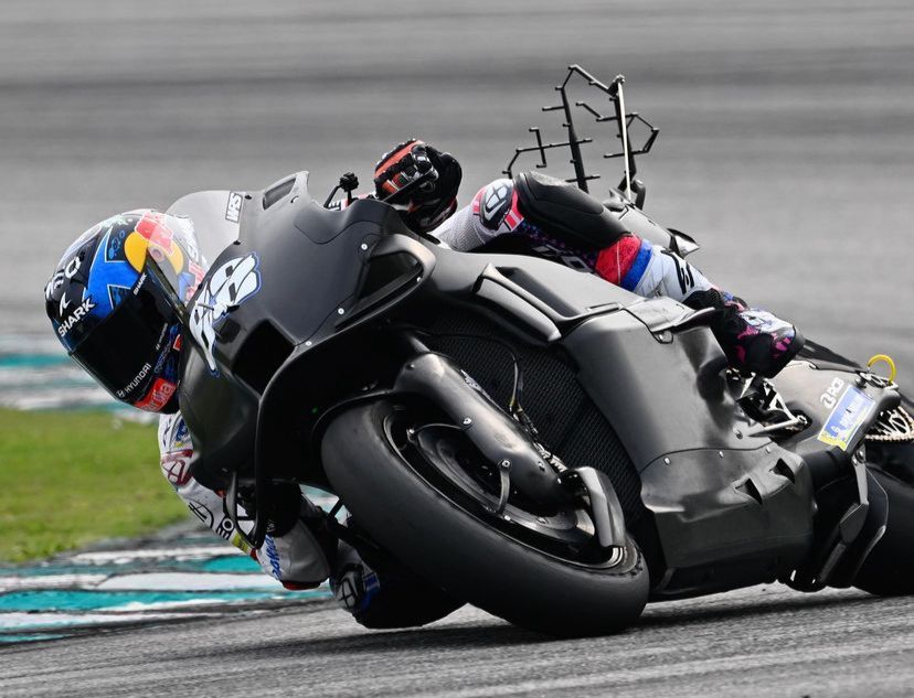 Jakarta: Penampilan unik tersaji saat sesi tes di Sepang, Malaysia, pada Selasa (6-2-2024) waktu setempat. Miguel Oliveira yang mengendarai Aprilia RS-GP 2024 terpantau menggunakan buntut dengan ukuran yang sangat besar, seperti membawa antena luar televisi.