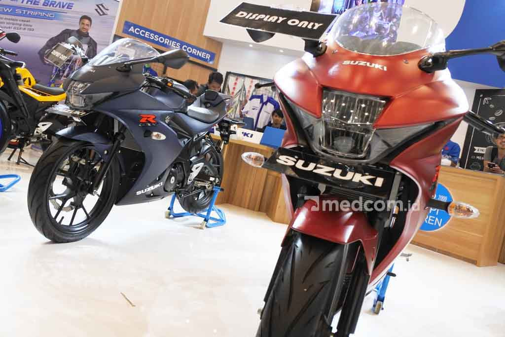 BSD City: Memasuki hari kedelapan pameran Gaikindo Indonesia International Auto Show (GIIAS) 2018, PT Suzuki Indomobil Sales (SIS) menampilkan dua warna baru untuk GSX-R150 di booth sepeda motor mereka.