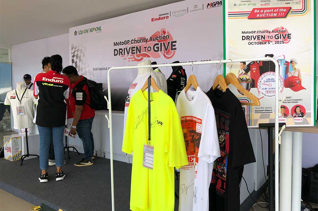 Bukan hanya dari tanda tangan Valentino Rossi, namun ragam pembalap lain juga ada yang apparelnya dijual secara lelang di booth ini. Hal tersebut menjadi salah satunya yang menarik. Mengingat ada juga yang ogah berpanas-panasan untuk berburu tandatangan pembalap.