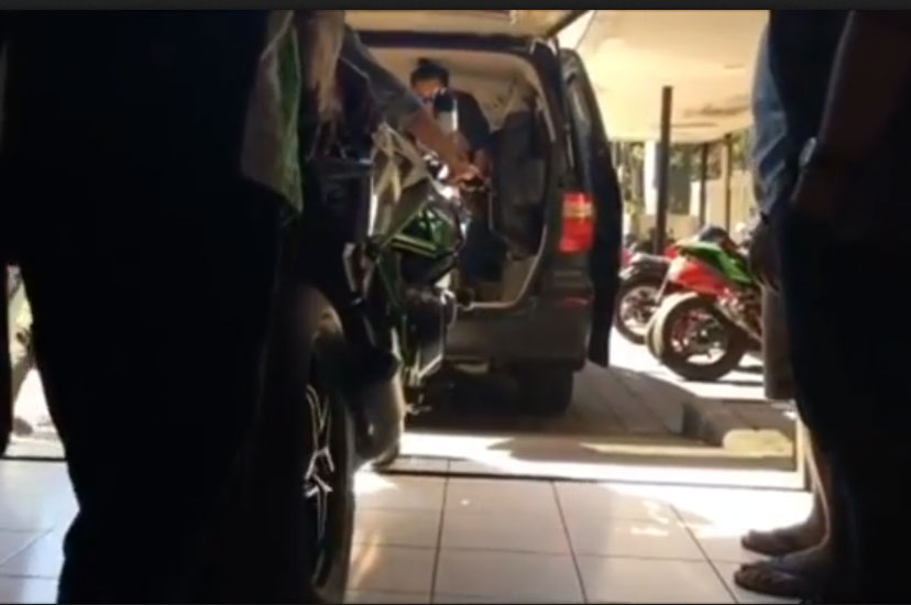 Malang: Biasanya jika membeli sepeda motor bermesin besar seperti mobil baru atau pun bekas, maka akan di-towing menggunakan mobil pikap. Namun berbeda dengan satu unit motor Kawasaki yang di-towing dengan Toyota Alphard ini.
