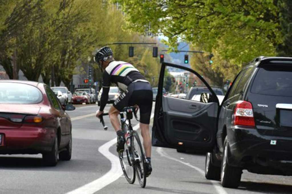 Dalam studi tahun 2011, di Chicago, Amerika ditemukan satu hari satu orang pengendara sepeda terkena kecelakaan pintu mobil yang terbuka. Dan taksi di kota New York telah terpasang 13.000 stiker yang menginformasikan agar berhati-hati saat membuka pintu kiri mobil. Di Chicago terbukti berkurang atas kejadian kecelakaan tersebut setelah kampanye membuka pintu kiri dengan tangan kanan.