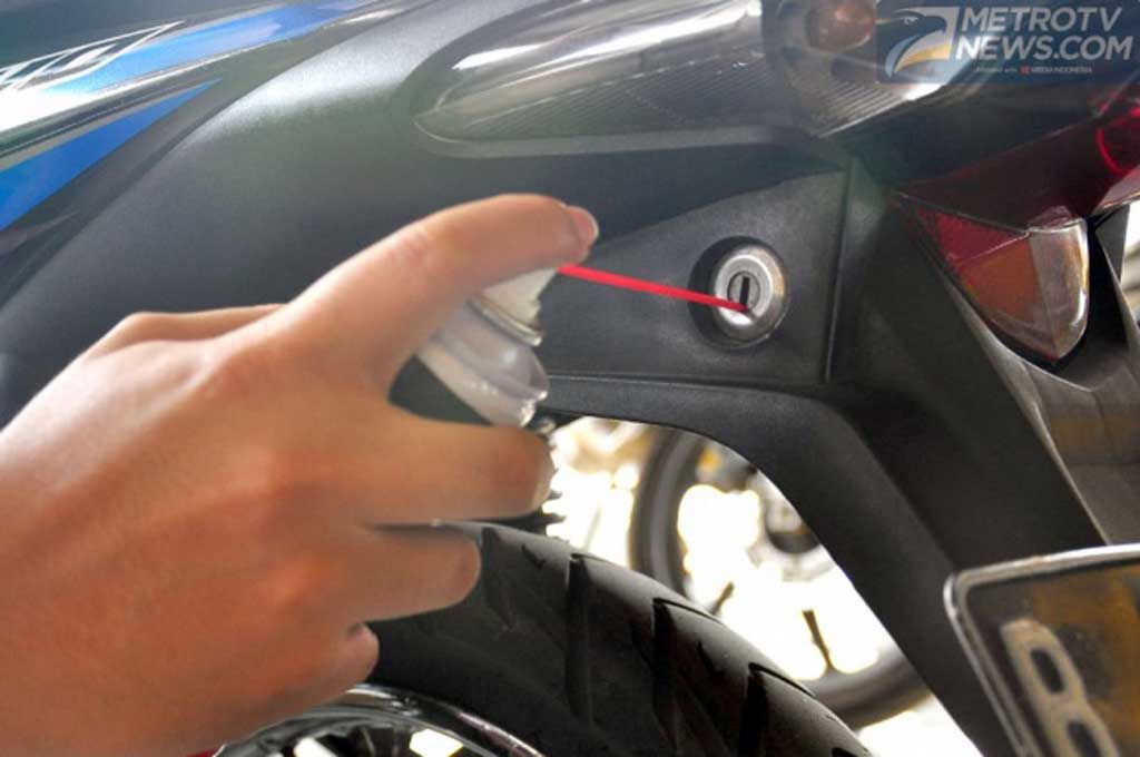 "Cairan pelumas disemprotkan ke dalam lubang kunci menggunakan sedotan kecil yang disediakan. Kemudian setelah jok bisa dibuka, giliran bagian dalam rumah kunci yang disemprot. Tetapi kalau kondisi rumah kuncinya sudah tidak bagus, misalnya pegas sudah lemah, lebih baik diganti saja."
