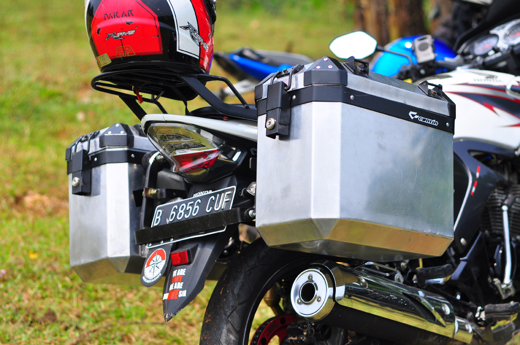 Pria pengusaha keperluan touring tersebut menambahkan, pengaturan barang bawaan pada side box juga penting. "Atur keseimbangan bobot bawaan setiap box, usahakan sama jadi tidak mengganggu handling motor," paparnya.