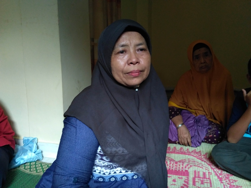 Istri almarhum Lilik Suwanto, Sih Sugiarto, 55, di rumah duka. Medcom.id/Patricia Vicka