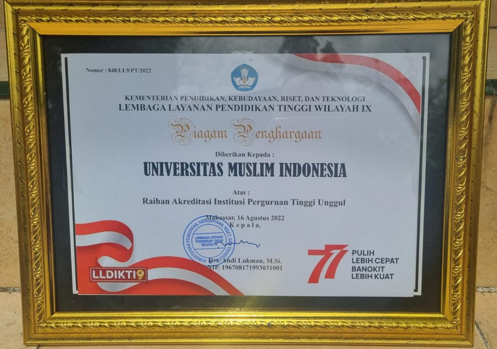 Penghargaan atas raihan Akreditasi Institusi Unggul itu tercantum dalam nomor 848/LL9/PT/2022. Penghargaan berupa Piagam Penghargaan yang ditandatangani langsung Kepala LLDikti IX Andi Lukman.