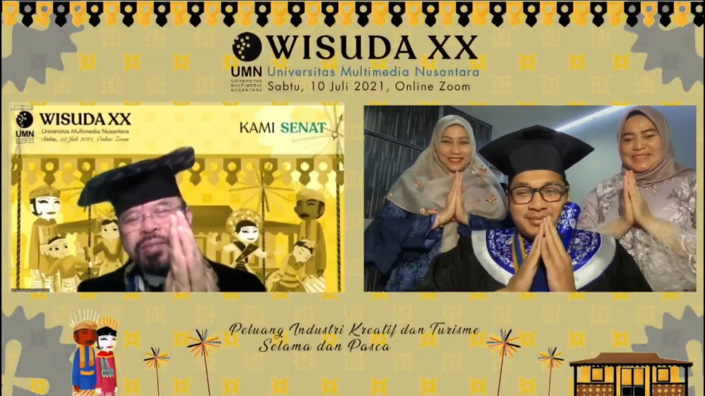 Wisuda masih menggunakan teknologi augmented reality dalam proses pemindahan toga wisudawan. Dalam sambutannya, Rektor UMN Ninok Leksono mengungkapkan keprihatinan atas pandemi yang terjadi. Namun, Ninok tetap merasa kagum atas komitmen wisudawan dalam menjalani proses belajar hingga selesai