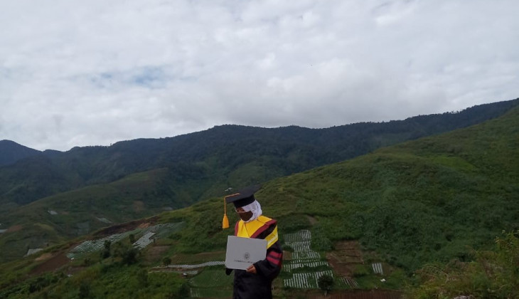 “Deg-degan kedap-kedip, listrik sudah memberikan tanda alamat sinyal akan off hari ini. Dan benar saja, jam 07.46 WIB satu menit menjelang wisuda dimulai, sinyal hilang total, alamat wisuda tidak bisa di rumah," ucapnya.