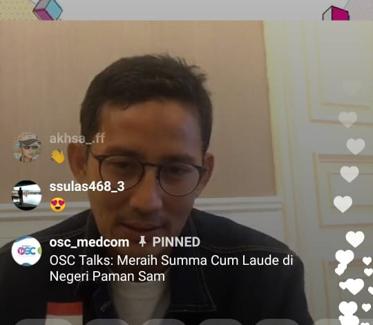 "Saya terus terang kaget, cuaca beda, jauh dari orang tua, yang paling parah Saya enggak bisa makan masakan asrama, dan uang terbatas waktu itu," kata Sandi dalam Live Instagram OSC Talks bertema 'Meraih Summa Cum Laude di Negeri Paman Sam, di akun @OSC_Medcom, Jumat, 23 Oktober 2020.