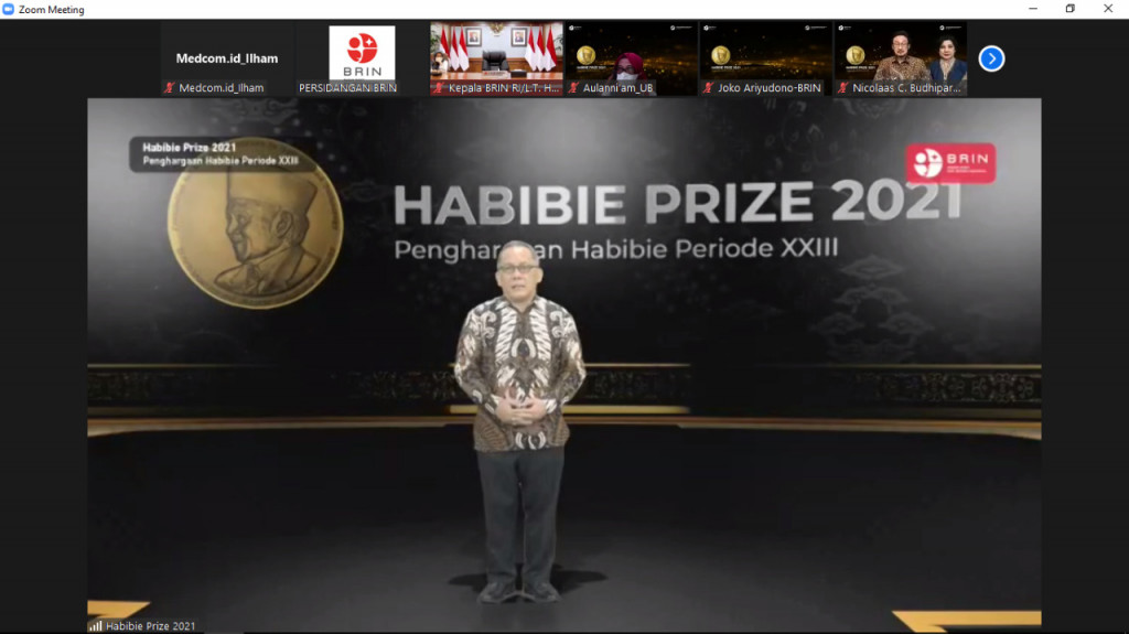 Penghargaan Habibie Prize 2021 diserahkan Handoko bersama Ketua Yayasan SDM Iptek Wardiman Djojonegoro, dan perwakilan keluarga B.J. Habibie, Ilham Habibie. Para pemenang mendapatkan medali hingga uang.