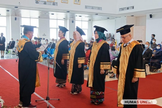 “Gelar profesor bukan untuk gagah-gagahan, tetapi sebuah penanda pemegangnya adalah orang terdidik, ilmuwan yang berdedikasi tinggi bagi pengembangan ilmu pengetahuan dan teknologi yang bermanfaat bagi umat manusia. Masyarakat menanti peran dan kontribusi guru besar Unesa,” tutur dia.