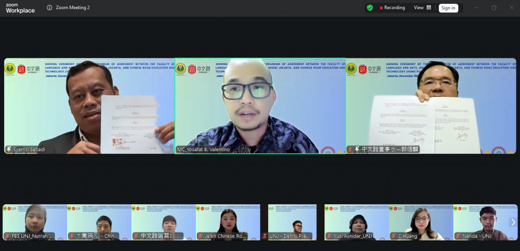 Jakarta - Fakultas Bahasa dan Seni Universitas Negeri Jakarta (FBS UNJ) menjalin kemitraan strategis dengan Shenzhen Chinese Road Education & Technology Co., Ltd (ChineseRd) untuk memperkuat ekosistem pendidikan bahasa Mandarin. Kerja sama ini ditandai dengan penandatanganan Memorandum of Agreement (MoA) secara daring.