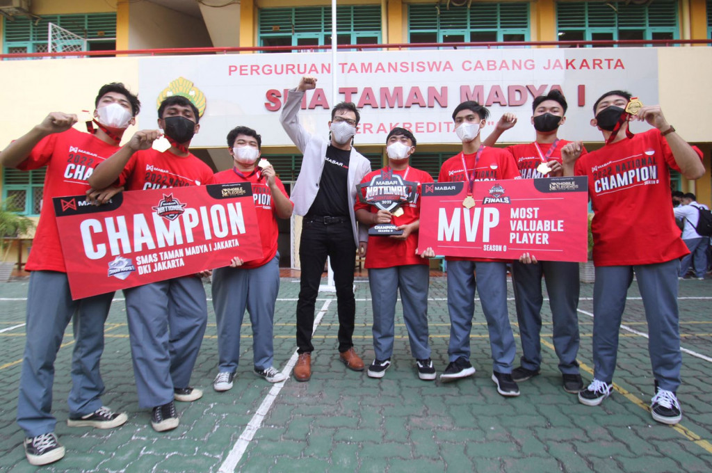 Juara Nasional dari MABAR Tournament adalah SMA Taman Madya 1 Jakarta. Sebelum menang, peserta harus melalui perjalanan panjang dari turnamen tingkat provinsi, masuk ke Babak Grup Nasional, baru kemudian di Playoffs yang menggunakan sistem double elimination seperti playoffs di MPL Indonesia.
