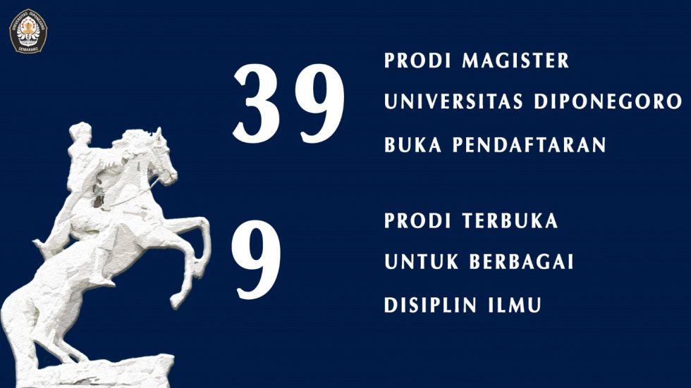 Semarang: Universitas Diponegoro (Undip) membuka pendaftaran mahasiswa baru program studi (Prodi) Magister untuk Tahun Akademik (TA) 2021/2022 melalui seleksi jalur Ujian Mandiri Pascasarjana dan Program Profesi Undip. Ada 39 Prodi Magister yang bisa dipilih sebagai tempat studi lanjut.