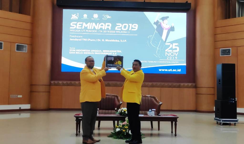 Hal itu disampaikan oleh Kepala Staf Kepresidenan Moeldoko saat mengisi Seminar Wisuda Universitas Terbuka (UT) Periode I Wilayah III 2019/2020 dengan tema SDM Indonesia Unggul, Berkarakter, dan Maju Menuju Masyarakat 5.0 di Universitas Terbuka Convention Center (UTCC), Pondok Cabe, Tangerang Selatan, Banten, Senin, 25 November 2019.