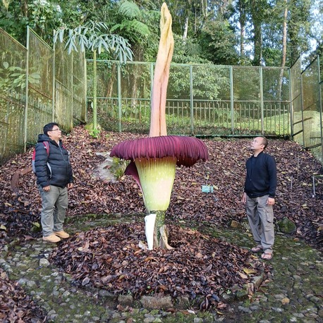 "Tunas bunga yang saat ini mekar mulai teramati pada 28 Februari 2024. Bunga mekar sempurna tepat pada Sabtu, 25 Mei 2024, pukul 22.03 WIB dengan tinggi spadiks 340 sentimeter dan lebar spatha 159 sentimeter," ujarnya seperti dikutip dari Antara, Minggu, 26 Mei 2024.
