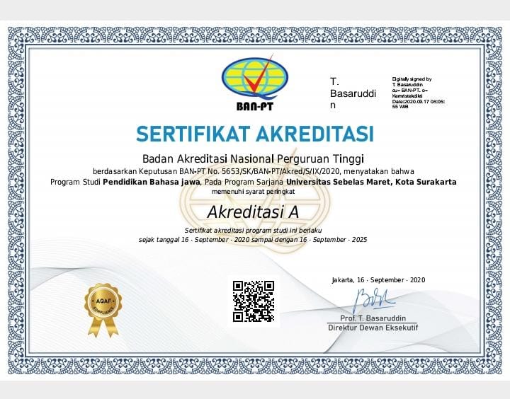 "Keberhasilan ini tentunya akan membawa dampak positif bagi lembaga, dosen, mahasiswa, dan masyarakat. Selanjutnya, Prodi Pendidikan Bahasa Jawa berkomitmen untuk mempertahankan status akreditasi A yang merupakan bagian dari penjaminan mutu internal dan eksternal," ungkapnya.