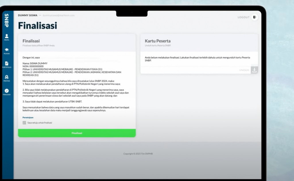 Cara Finalisasi Pendaftaran SNBP 2025