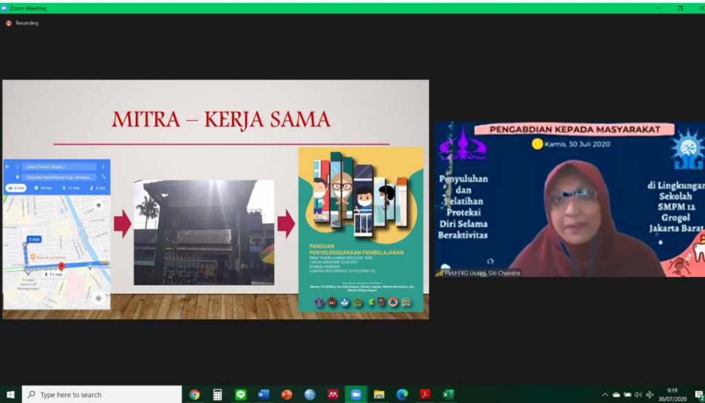 Salah satu koordinator PkM, Siti Chandra Dwidjayanti menyampaikan pandemi membawa dampak yang cukup luas pada program tahunan ini. Kesulitan dalam mengakses masyarakat terutama di bidang pemeriksaan dan pengobatan menyebabkan PkM FKG Usakti hanya bisa dilakukan berupa penyuluhan dan pelatihan bagi masyarakat dalam menjaga kesehatan.