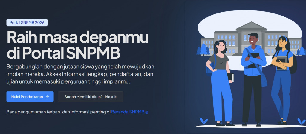Dilansir dalam laman resmi SNPMB, registrasi akun siswa yang akan mengikuti Seleksi Nasional Berdasarkan Prestasi (SNBP) ataupun Seleksi Nasional Berdasarkan Tes (SNBT) akan dibuka pada tanggal 12 Januari sampai 7 April 2026. Peserta SNPMB wajib memiliki akun yang sudah disimpan permanen agar bisa mengikuti seleksi masuk perguruan tinggi.
