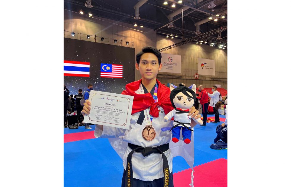 Hafiz berhasil meraih medali perunggu di ajang GOYANG 2022 World Taekwondo Poomsae Championships yang diselenggarakan di Korea Selatan pada 21-24 April 2022.