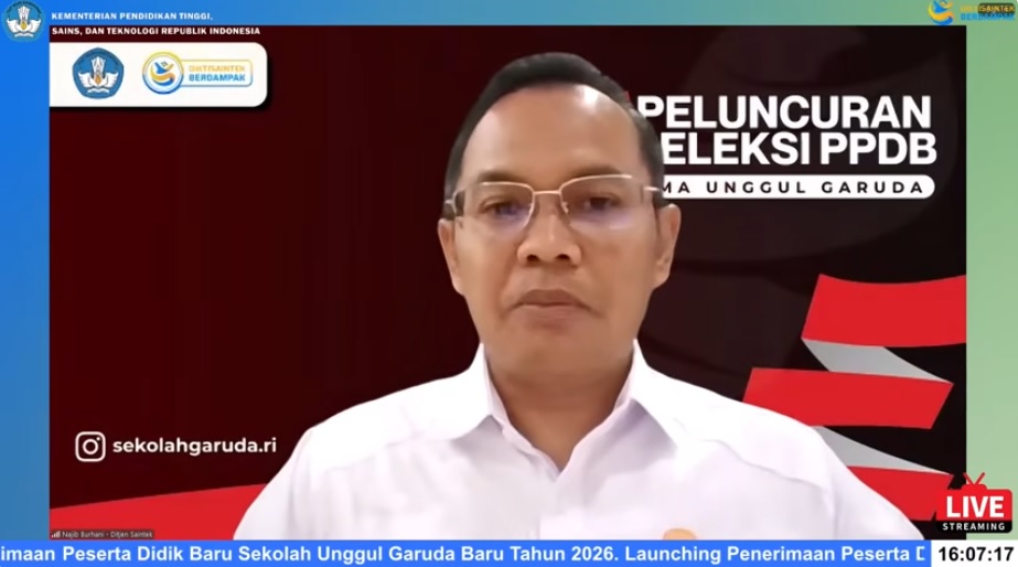 "PPDB Sekolah Garuda Tahun Ajaran 2026/2027 merupakan rekrutmen angkatan pertama peserta didik unggulan yang akan menempuh pendidikan di empat Sekolah Garuda baru," kata Dirjen Saintek, Ahmad Najib Burhani, dalam Sosialisasi Penerimaan Peserta Didik Baru Sekolah Garuda Baru Tahun 2026 di YouTube Kemdiktisaintek dikutip Jumat, 30 Januari 2026.