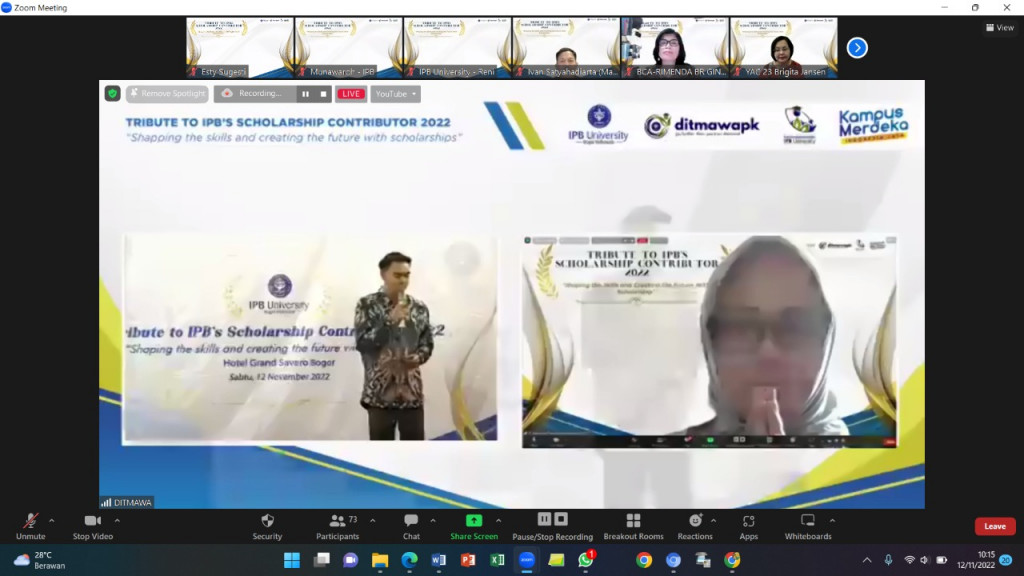 IPB University memberikan penghargaan dan apresiasi kepada donatur beasiswa pada 2022. Apresiasi donatur beasiswa bertema “Shaping the Skills and Creating the Future with Scholarship”.