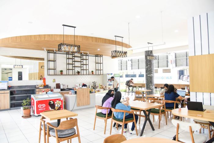 Di Kantin Sapta juga ada taman dan kafe yang bisa kamu gunakan untuk bersantai dan belajar sambil ditemani kopi atau minuman segar lainnya.