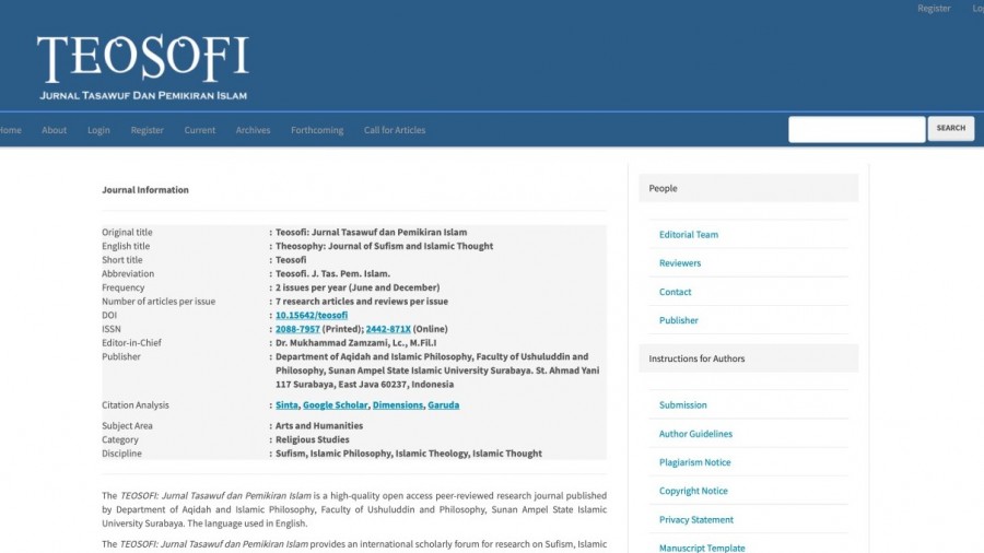 - Teosofi: Jurnal Tasawuf dan Pemikiran Islam, UIN Sunan Ampel, Surabaya.